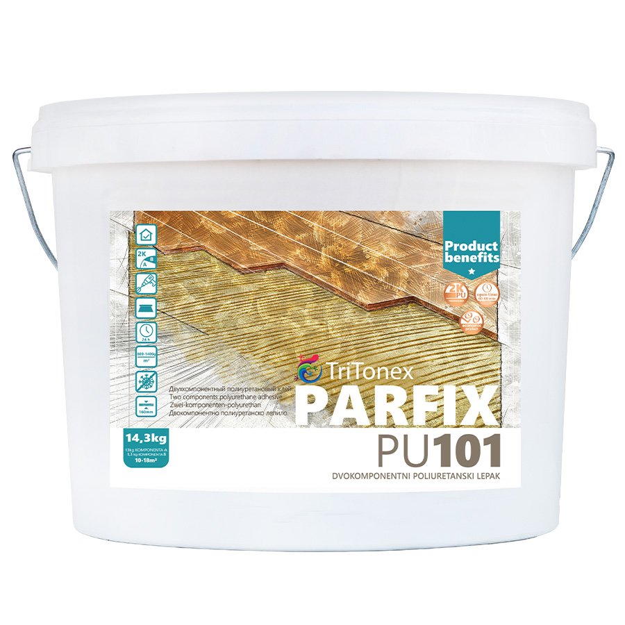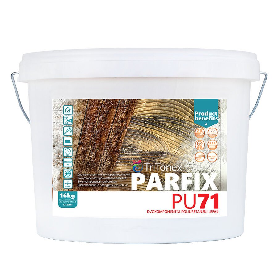Dvokomponentni epoksi poliuretanski lepak namenjen za lepljenje svih vrsta i veličina parketa. Pogodan za polaganje parketa većih dimenzija (maksimalna dužina 2500mm, maksimalna širina 200mm) kao što je laminatni, daščani i klasični parket, brodski pod, panel parket od egzotičnih vrsta drveta, kao i već lakiranog parketa i podno grejanje.